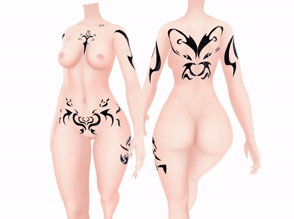 Hand-drawn tattoos for Zinfit, Panda's Female, and Minki's Pretty bases!