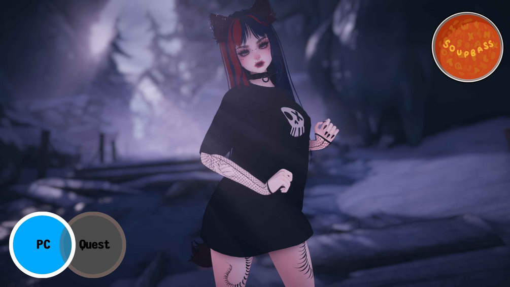 The Quest side is missing a lot of features that are available on the PC side!!! I do not recommend buying this avatar if you are on standalone quest, as you will not have the same experience as a PC user. I try to include Quest conversions when I can so everyone is able to see you.